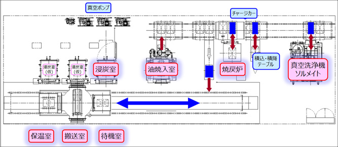 主な用途 真空浸炭 など 装置仕様 有効寸法 760W×1,220L×700Hmm 最大積載量 900kg/Gross 浸炭ガス アセチレン 焼入油 ハイテンプA