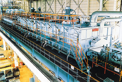 中外炉のストリップ連続焼鈍ラインはウォーキングビーム型加熱炉同様、国内外の主要な製鉄・製鋼会社や伸銅会社、アルミ会社に多数採用され、ストリップの高品質化と省エネ生産に貢献しています。焼鈍炉、前後機械、計装制御装置の各種特許技術の粋を結集した本ラインは、世界最高峰のトータルプロセス技術として圧倒的評価を得、世界最大規模のラインをお届けしてきました。