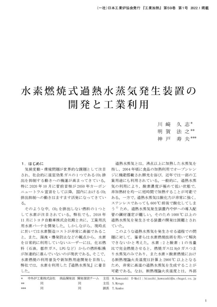 「水素燃焼式加熱水蒸気発生装置の開発と工業利用」(2022.01)