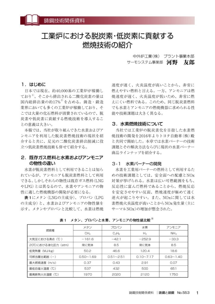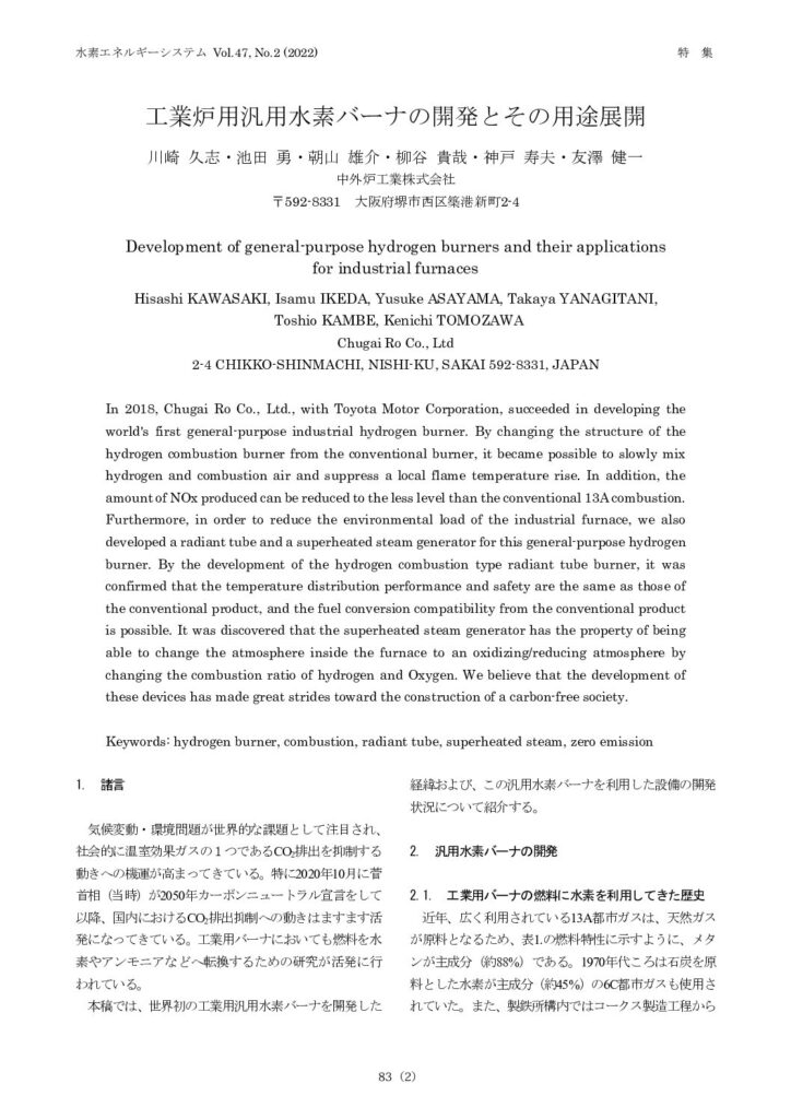 「工業炉用汎用水素バーナの開発とその用途展開」(2022.07)