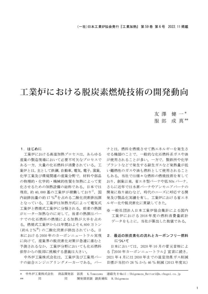 「工業炉における脱炭素燃焼技術の開発動向」(2022.11)