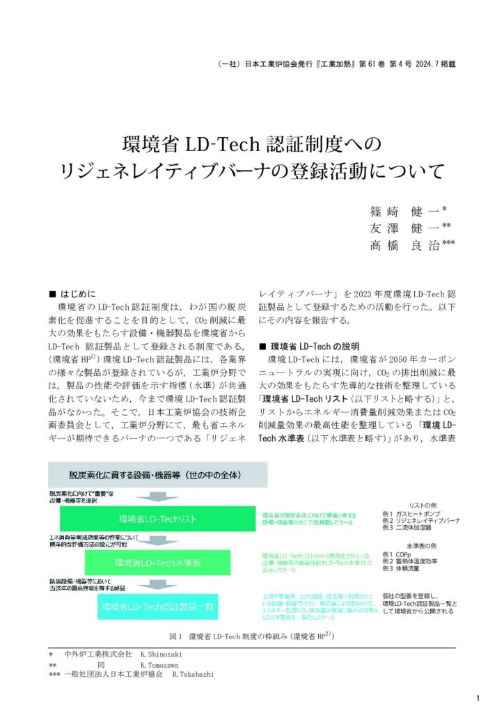 「環境省 LD-Tech 認証制度へのリジェネレイティブバーナの登録活動について」(2024.07)