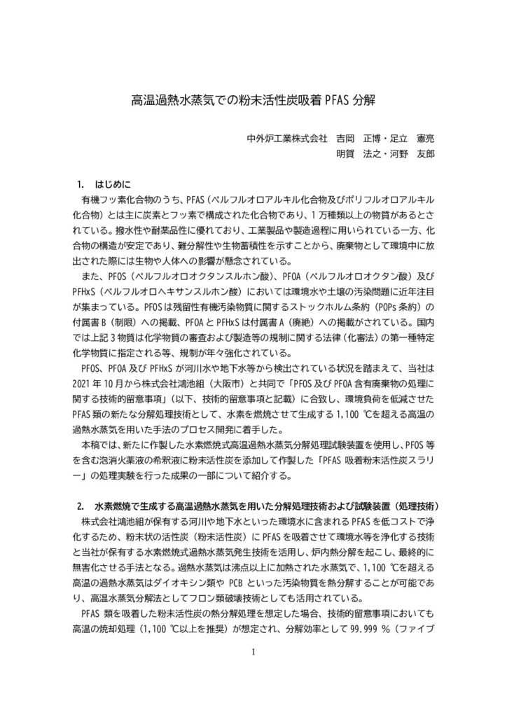 「高温過熱水蒸気での粉末活性炭吸着PFAS分解」(2024.09)