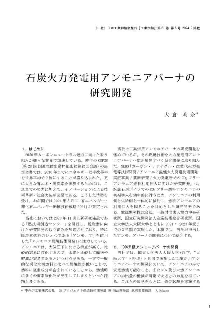 「石炭火力発電用アンモニアバーナの研究開発」(2024.10)