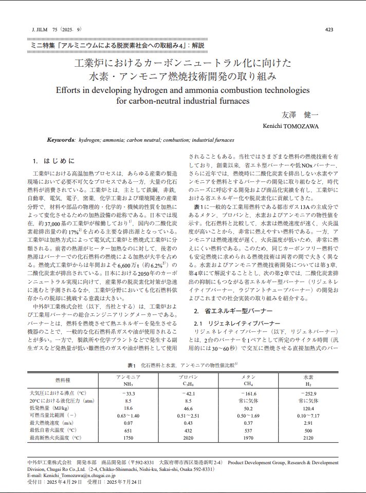 「工業炉におけるカーボンニュートラル化に向けた水素・アンモニア燃焼技術開発の取り組み」(2025.10)