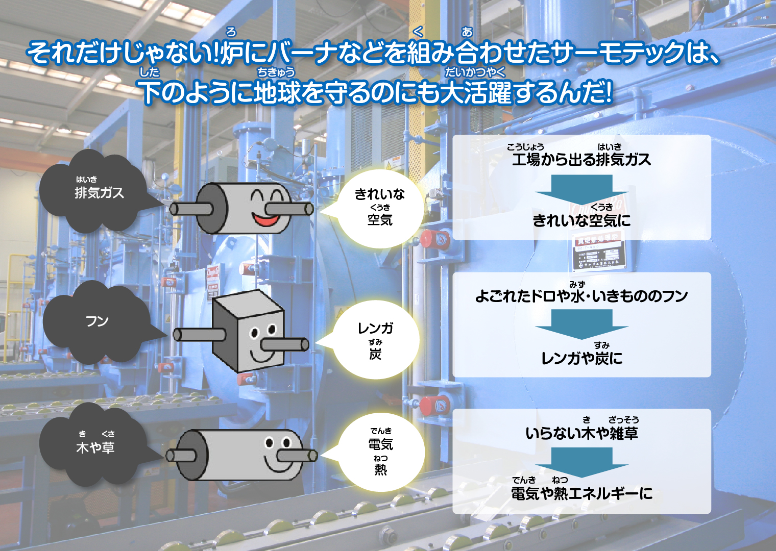 中外炉のCorporate Statementは「サーモテックで未来をひらく」です。