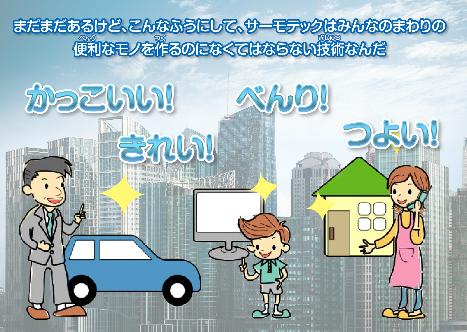 一口で言えば、「サーモテック」とは、熱エネルギーを使って、ものを温め、冷やす技術のことです。