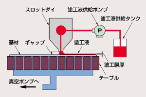 | 製品概要 | ダイコータを用いて、ガラス・フィルム・紙等シート基材に高精度に塗工します。ダイコータによる閉回路塗工のため、溶剤の蒸発等塗工液の変化が少なく、塗工液のロスを最小限に抑えます。低粘度~高粘度まで幅広い塗布範囲に対応可能です。また、基板洗浄装置・ロボット・真空乾燥装置・ホットプレート・オーブン等と組み合わせたシステムにも対応しています! | ||||||||||||