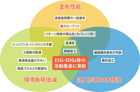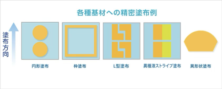 ダイヘッドに独自の幅替機構を搭載!基板形状問わず様々な形状の塗布に対応します。