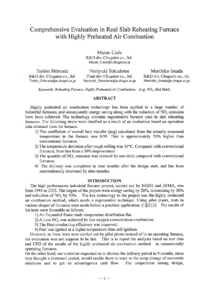 「Comprehensive Evaluation in Real Slab Reheating Furnace with Highly Preheated Air Combustion」(2003)