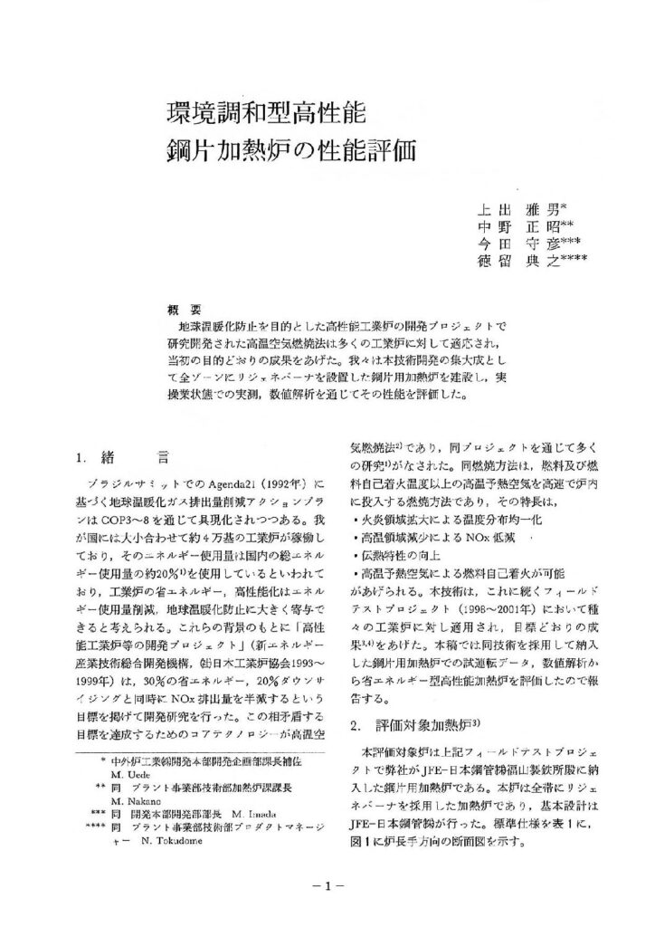 「環境調和型高性能鋼片加熱炉の性能評価」(2003)