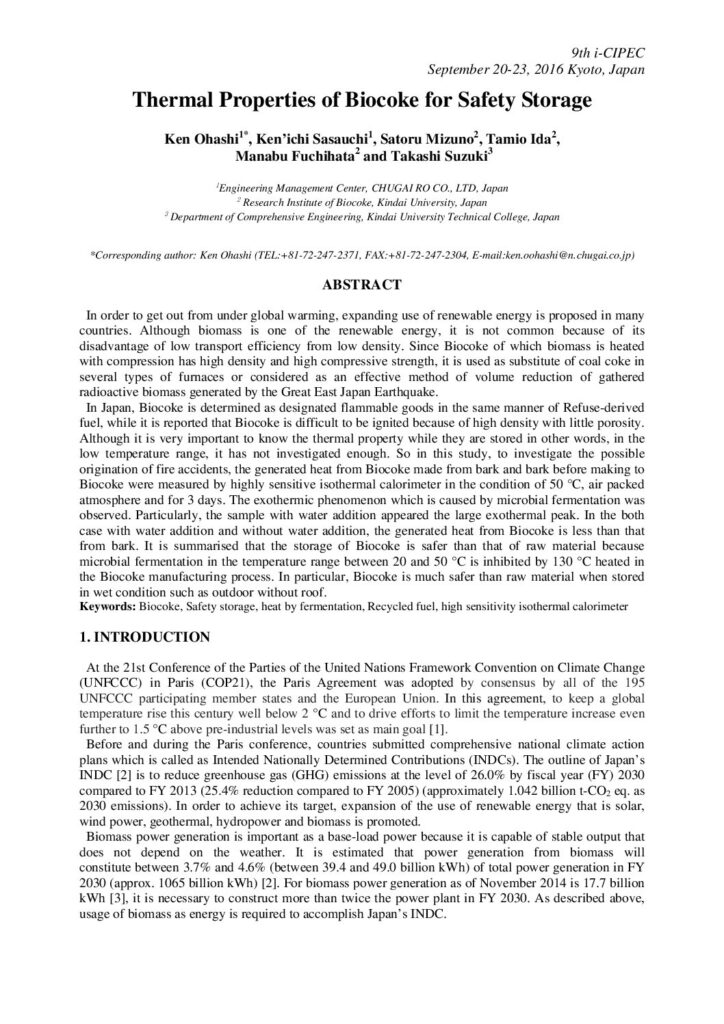 Thermal Properties of Biocoke for Safety Storage(2016.11)