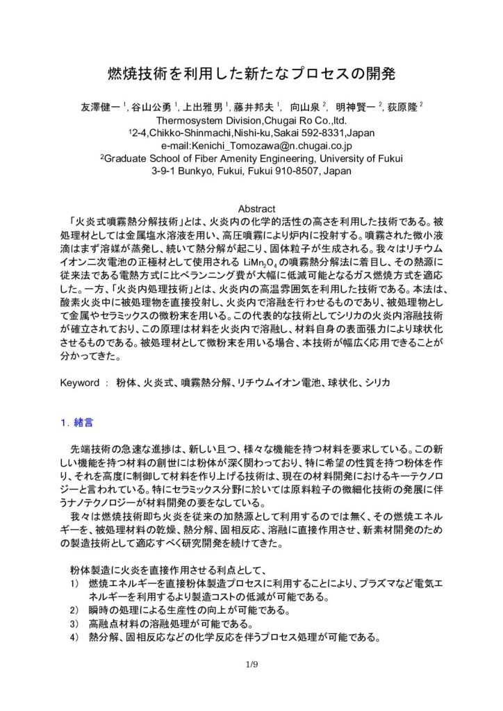 「燃焼技術を利用した新たなプロセスの開発」(2008.10)