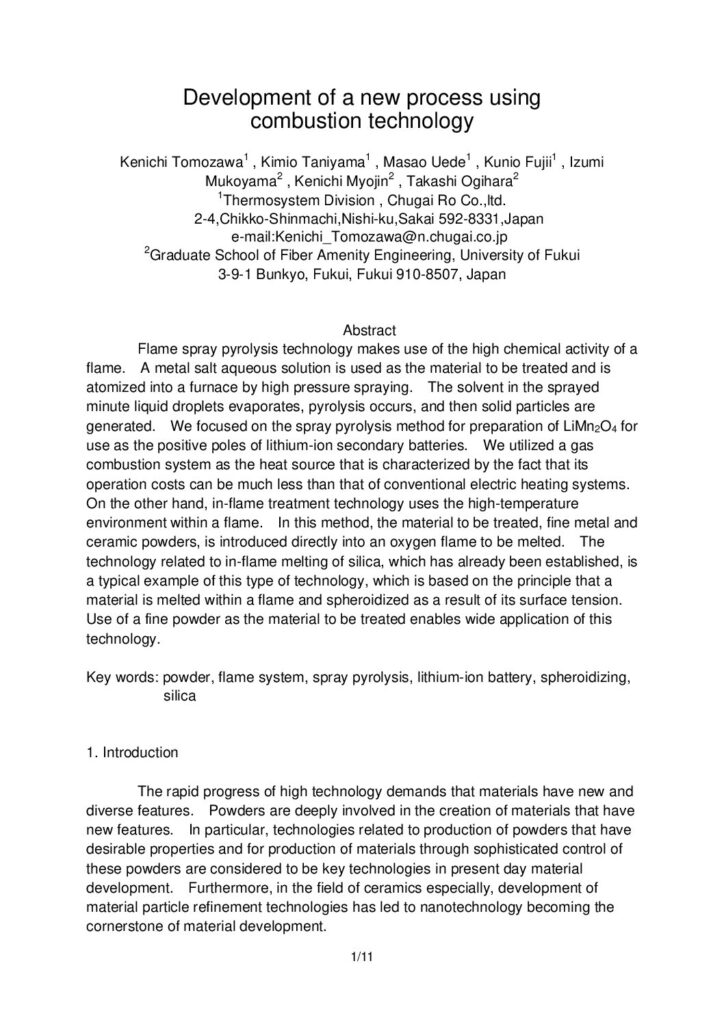 「Development of a new process using combustion technology」(2008.10)