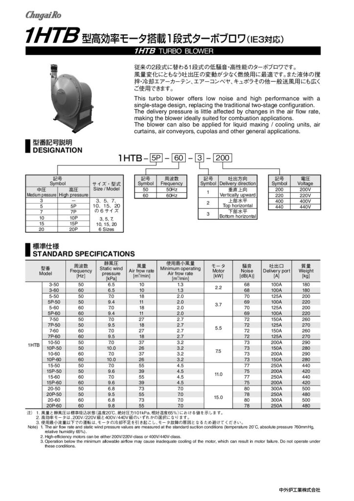 1HTB型高効率モータ搭載1段式ターボブロワ(IE3対応)