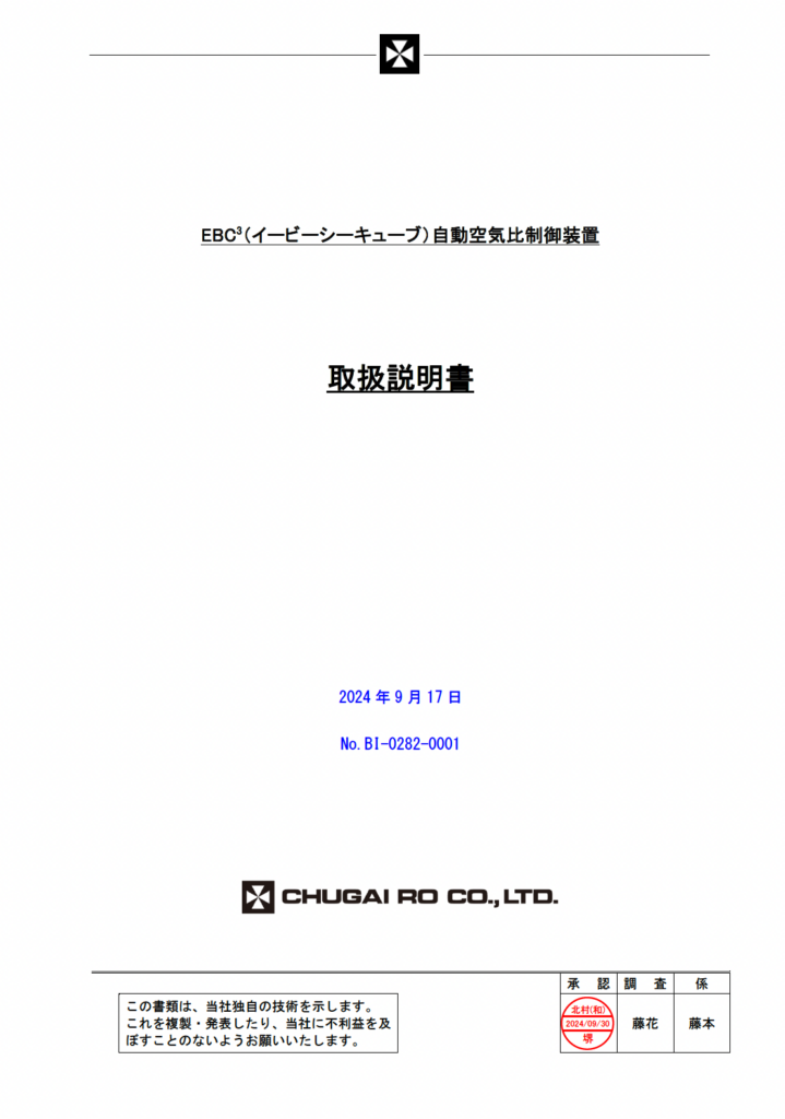 EBC³®(イービーシーキューブ)自動空気比制御装置(取扱説明書)