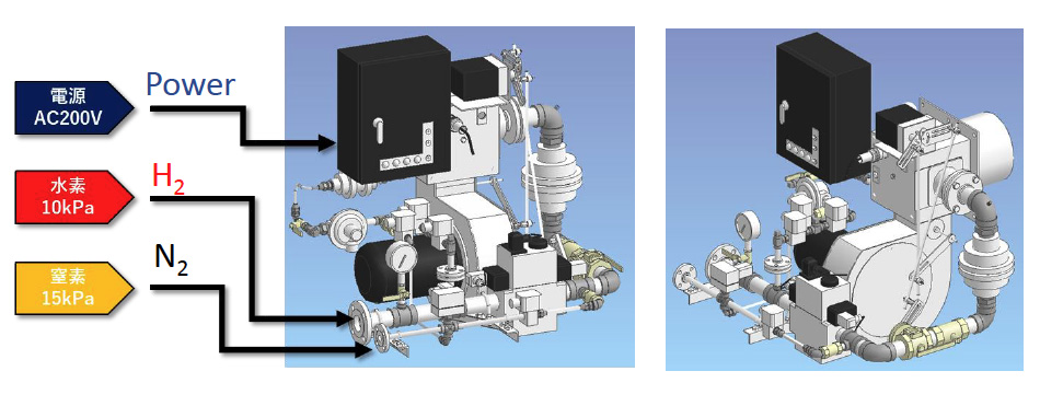 枪式燃烧器,配有集成鼓风机、喷嘴装置和氢燃料点火系统。